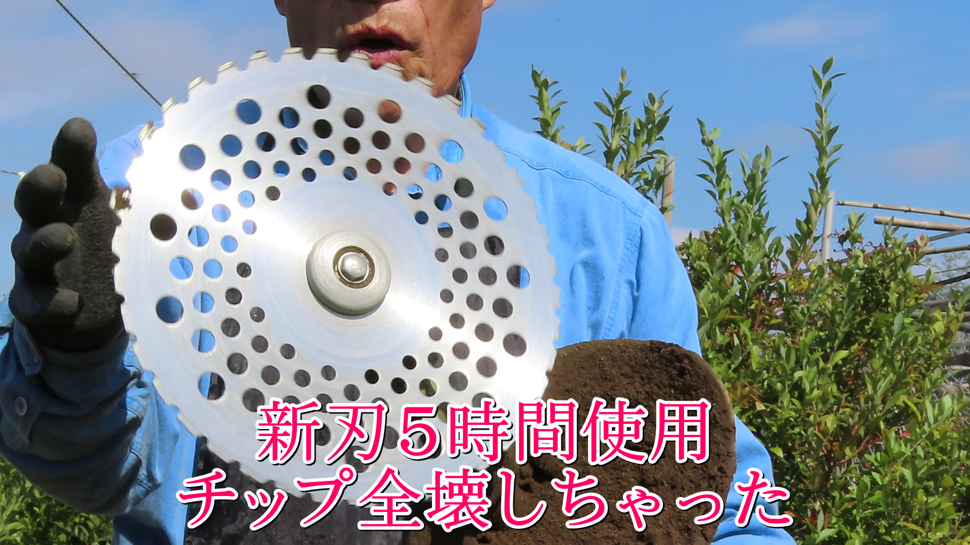 急斜面土手の草刈り5時間強行  新刃のチップ全壊