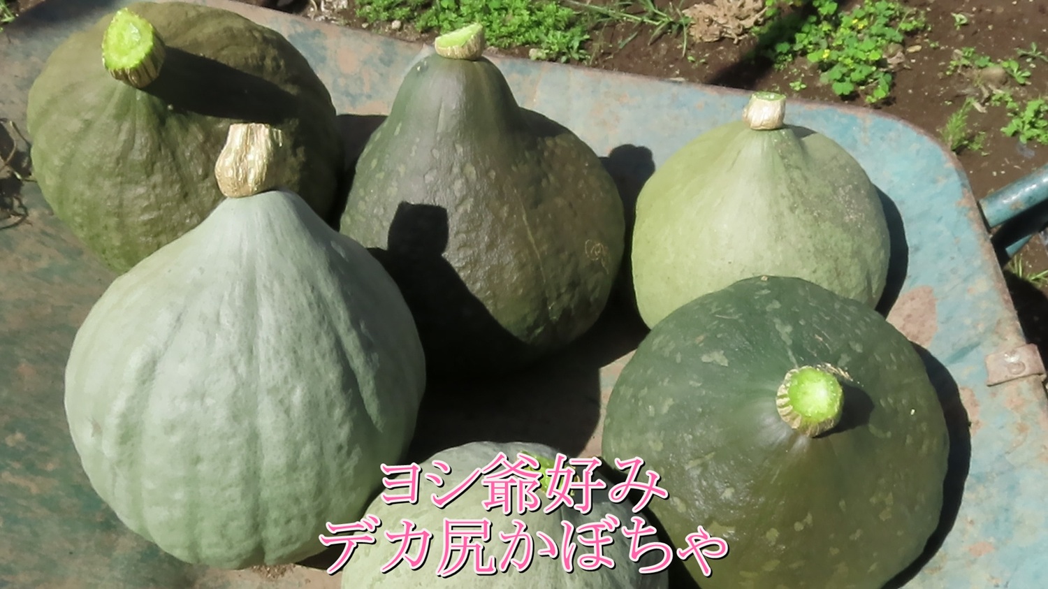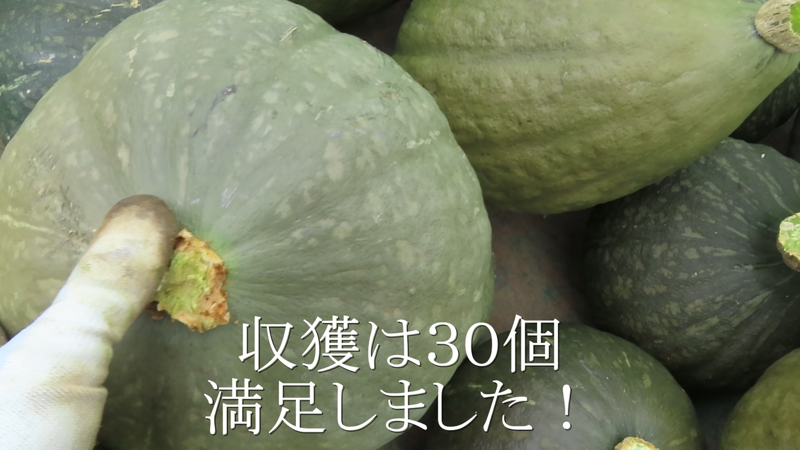 例年は、60本程の枝蔓を管理していましたが、今年はその半分30本植え付けでした。でも、見事に大きい実だけが育ってくれました。今回は12個収獲して、介護ホームの厨房に5キロ程の巨大な南瓜3個進呈。バイト先事務方にも巨大南瓜3個。その他、友人にもお配りしました。