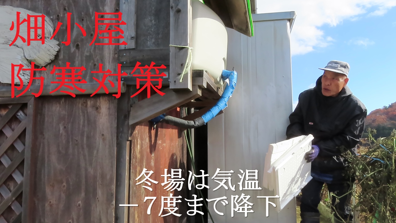 みちのく郡山郊外にあるヨシ爺気晴らし農場。今年も、トイレ用雨水タンクのパイプなど、室内外の保温対策が始まりました。低温で強風の日になると、外のタンクが凍結する時が有ります。室内なども、保温対策がなされていないので、凍結すると面倒です。毎年この時期になると、保温剤などで覆います。と言っても、有り合わせの材料ですけどね!