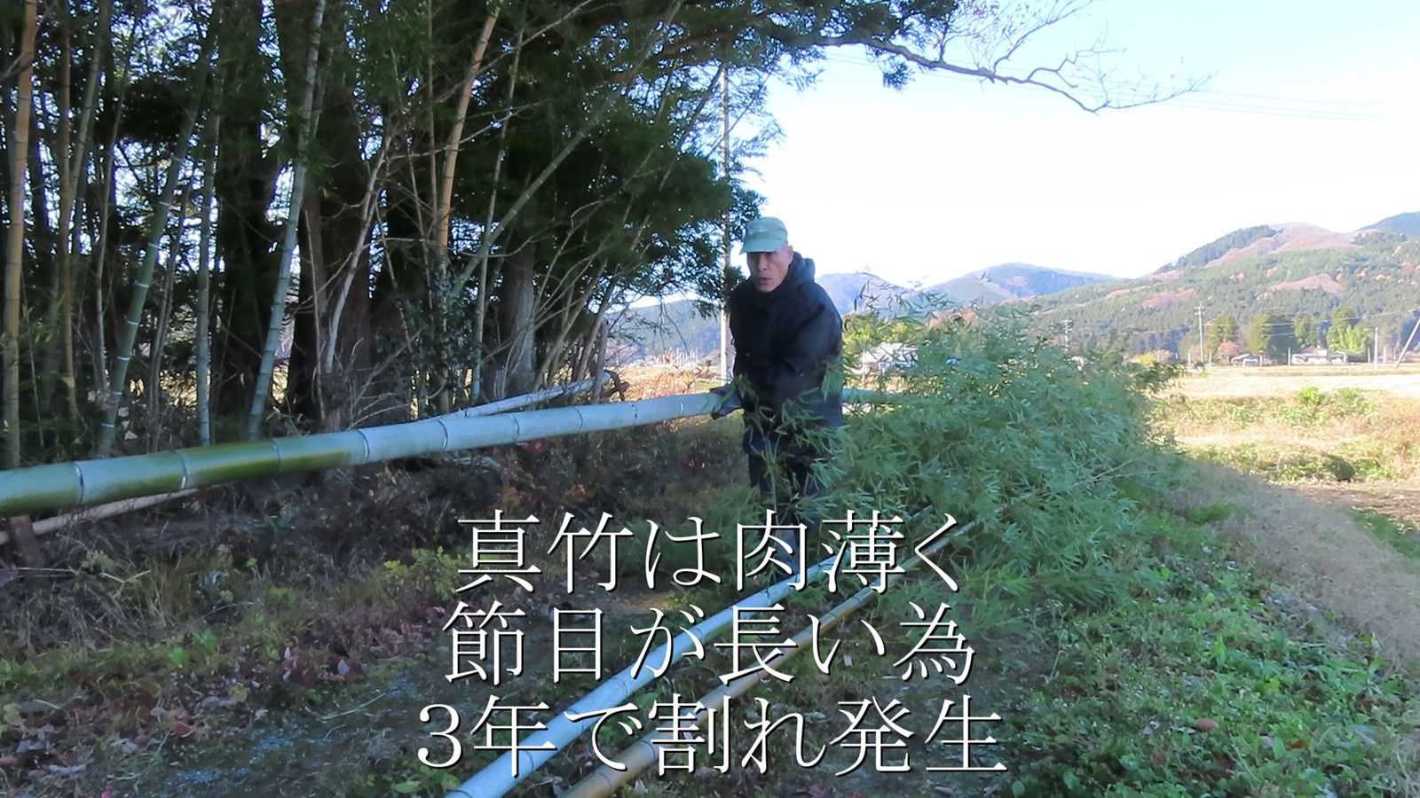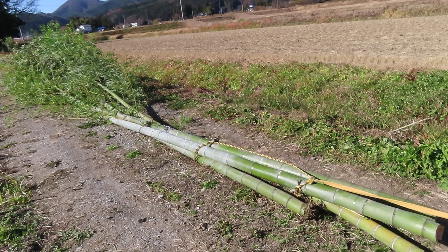 冬場は竹切の時期だよ  降雪前に竹棚補強