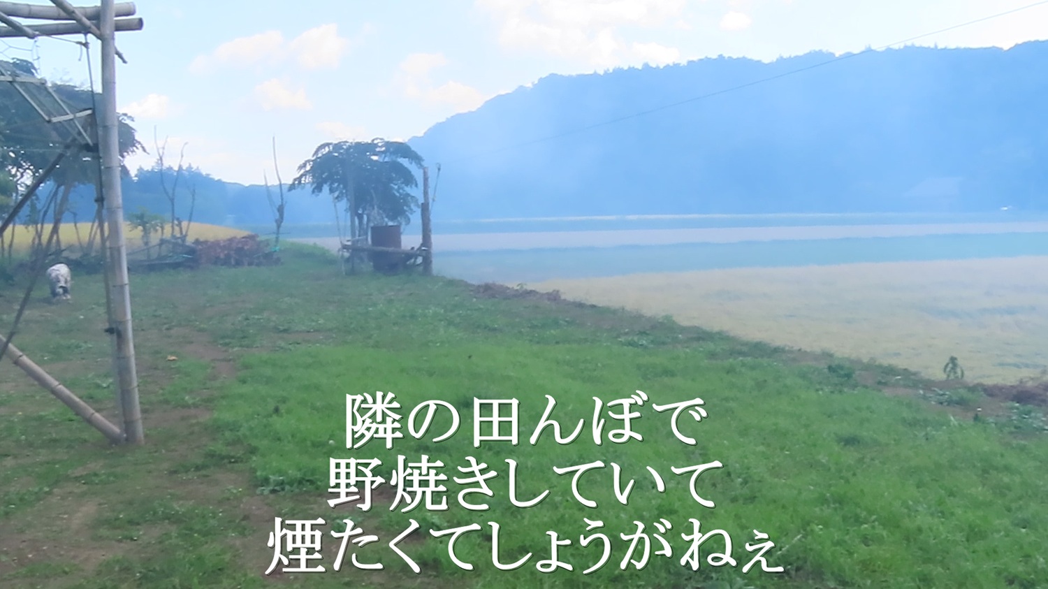 ヨシ爺農場 ストレス解消 民謡 会津磐梯山 ヨシ百姓三味線  杉丸太加工して農場門柱にする