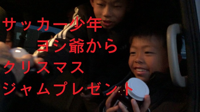 今年も残り一週間。ジサマになると、歳はダブルで降り注ぐ?てな訳で、今年もサッカー軍団にジャムのプレゼント!ヨッシー手造りの美味しいジャム食べて、来年も頑張ってくれよな!