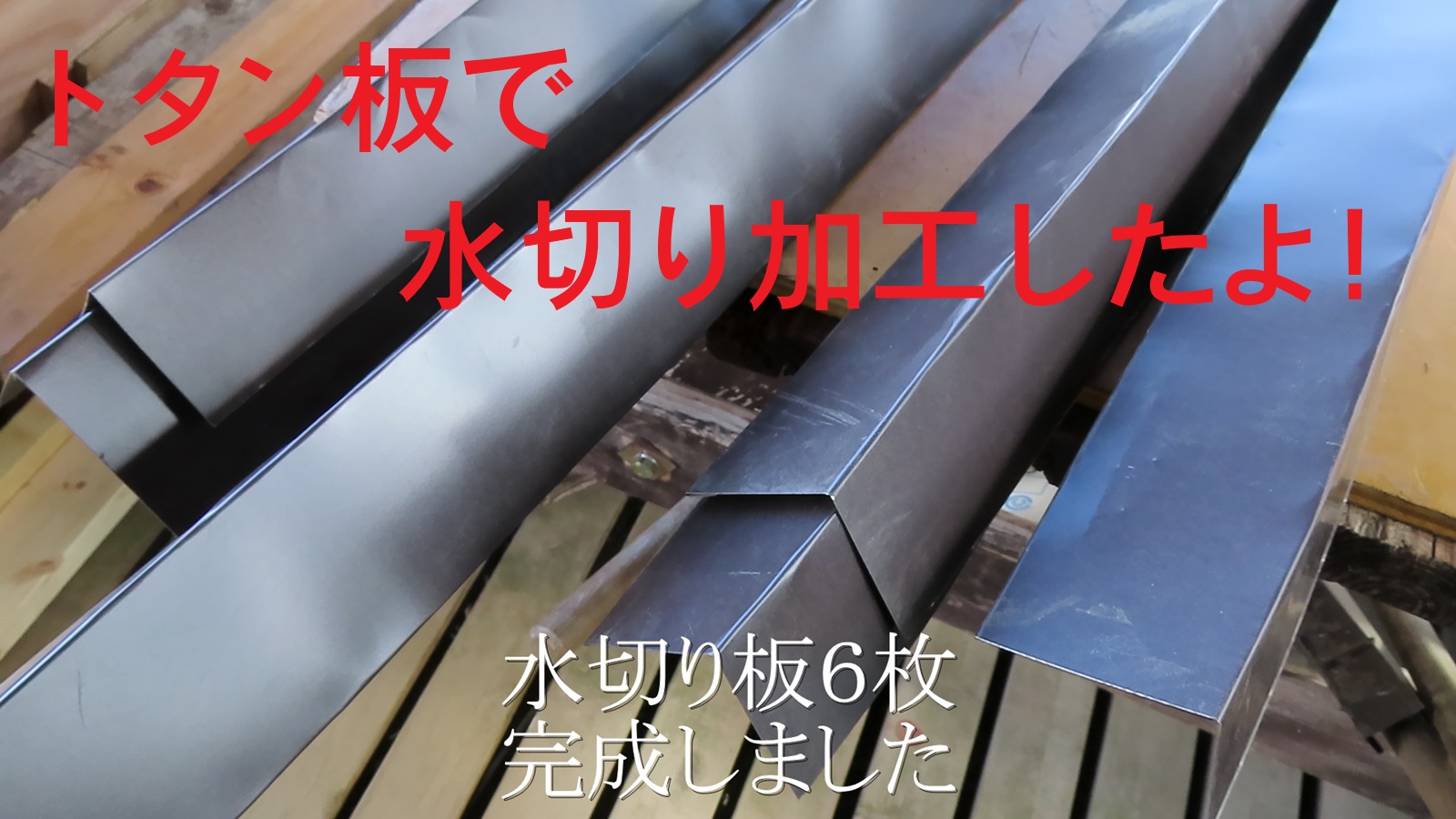 3連休が、低気圧通過強風で屋根上がれず、仕事変更しました。屋根先端に取り付ける、トタン水切り板加工。市販品は高いので、大雑把ながら手仕事で加工。一枚のトタン板から、1.8M×91cm。此れを6枚に加工。明日風が弱かったら、取り付けてからプラシート板を取り付け。そしてトラックシートを被せます。何とか、月曜休みまでに完成したい。